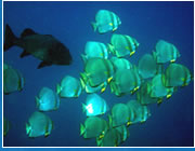 and diversity of fish life including Barracuda, Batfish, Angelfish,