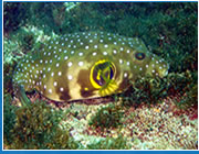 Porcupine Puffers, Lobsters and Moray Eels vie for space. A favorite